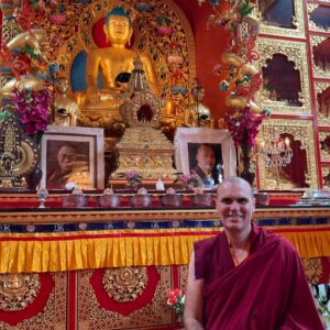Choden resplendent in Samye Ling shrine hall. Scotland.