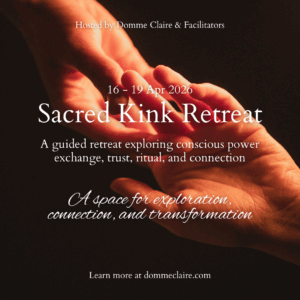 Sacred Kink Couple's Retreat at The Wild Pod What This Is Sacred Kink is a fully clothed, non-erotic retreat designed for couples and play partners who want to explore authority, devotion, and connection with intention, depth, and reverence. This is not a play party. It is not performance. It is a facilitated journey into embodied presence, […]
